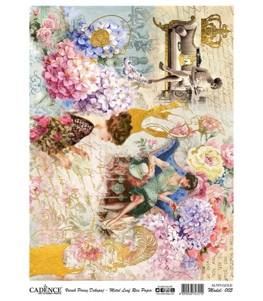 Cadence Desenli Altın Varak Pirinç Dekoapaj Kağıdı - Model 005