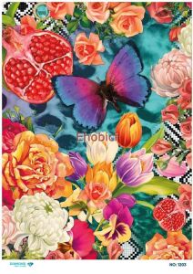 Diamond Craft Pirinç Dekopaj Modelleri, 30x42cm (A3) Ebatındadır. Pirinç kağıt dekopajlar çeltik sapından yapılan ince kâğıt üzerine basılı olup, dekopaj çalışmaları için kullanımı kolay, ince ve dirençli her türlü yüzeyde Cadence Dekopaj Plus ve Transfer Dekopaj Tutkalı ile keyifle kullanılabilir. En iyi sonuç için zemin renginin açık renk olması tavsiye edilir.